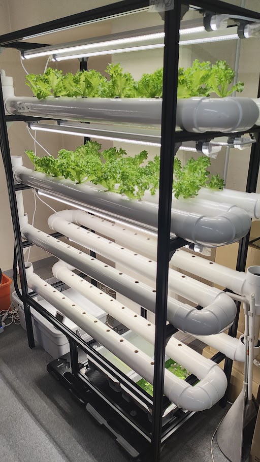 2024年10月からスパイスキューブ(株)様の「アグロット」を弊社尼崎事務所に2式導入し、各種葉野菜の水耕栽培に取り組んでいます。一般事務所の雰囲気なので防虫対策やCO2適正供給がじゅうぶんではありませんが、各種葉野菜の育成に係る特徴も掴めてきましたので、本年6月あたりからもう少し設備の整った環境を準備する予定です。